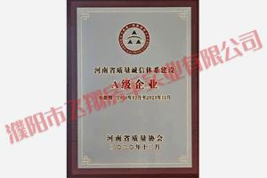 河南省質(zhì)量誠信體系建設(shè)A級企業(yè)