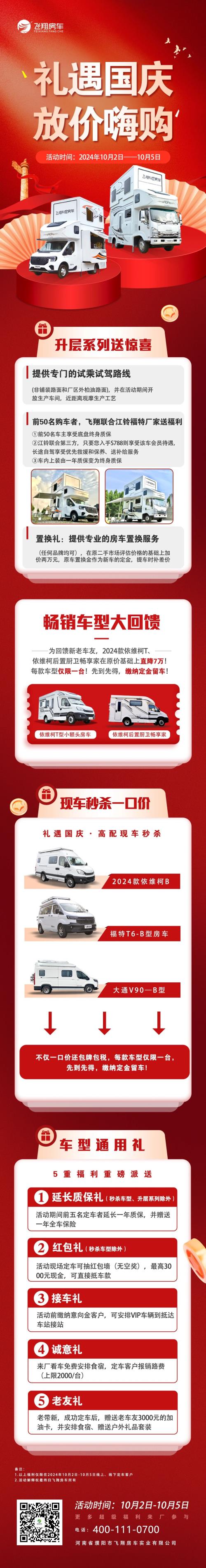 您準(zhǔn)備好了嗎?10.2號(hào)-5號(hào) 特惠價(jià)格 現(xiàn)車充足 飛翔房車全體員工歡迎您的光臨!