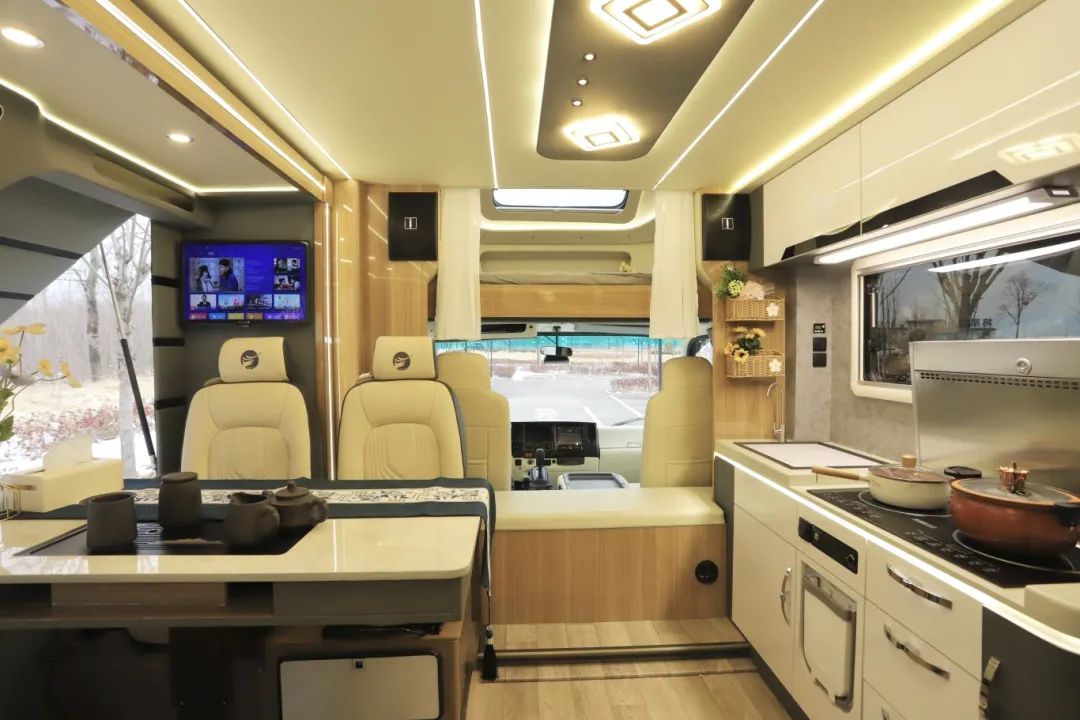 車內(nèi)溫馨感十足,各種功能一應(yīng)俱全,簡直就是行走的溫馨小家。車內(nèi)不包括駕駛室可使用面積為23.24個(gè)平方,1m多寬的大走廊,空間大的能跳舞,來回走動(dòng)不受限。