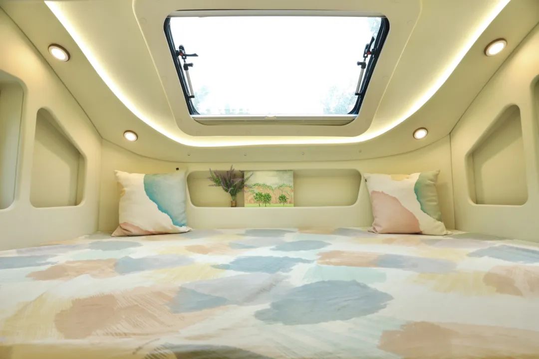 前方的額頭床內(nèi)高做到了1m,不壓抑,里面三面環(huán)窗,保證了通風(fēng)換氣的效果,不憋悶。儲(chǔ)物空間也是非常豐富的,隨手拿取的物品更加方便拿取,1.4×2.2m的大尺寸,可以滿足兩人休息。