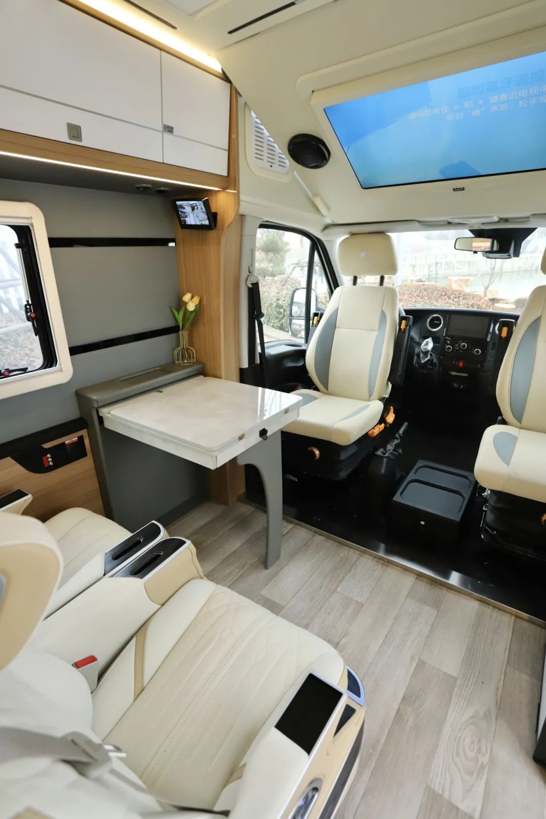 不愧是銷冠,一口氣被定了30多臺!今天就為您帶來它的詳解版! 底盤性能優(yōu)越,采用依維柯歐勝房車專用底盤,3.0T排量,8AT柴油自動擋變速箱,動力強勁;車長5米99、寬2米3、高2米85,就這個車高再也不用擔心3米的限高,暢通無阻。 作為旅居車而言,沒有強制的報廢年限,在節(jié)假日高速還能免費通行。車頭前臉滿天星進氣格柵,兩個鹵素大燈、車身兩側加長加寬后視鏡,讓您有個更好的視野,觀察后車情況。小額頭設計盡顯時尚,減少行車的風阻和風噪,通過性也絲毫不用擔心,上方還開了一扇超大的觀景天窗,打開天窗即可欣賞美景。 現(xiàn)在來到副駕駛一側,車身四周配備四路監(jiān)控,下邊則是一個可伸縮的進口遮陽棚,拉開最大尺寸可達到2.5m*3m,無論是戶外做飯還是乘涼休息都可以用到它。 下面的兩個戶外照明燈,在晚上也不用擔心照明問題;再往下則是兩個雙層真空亞克力材質的外推窗,保溫隔音降噪的效果都非常不錯。 玻璃下方的擋板拉開可作為戶外做飯的小桌板,切菜,備菜或者放調味料,里面則是一個儲物空間采用內外貫通的設計,里邊配備淋浴花灑和五孔插座,戶外取水沖洗瓜果或者戶外充電也非常方便。 至于做飯的話,就往后邊看,在裙邊處設置了抽拉柴油爐,飛翔的自主知識產權,現(xiàn)在已經(jīng)研發(fā)到了第四代,無明火防強風,五檔調節(jié),火力最大值可達到5000瓦,即使在青藏高原也可以輕松做飯。 來到車尾處,18L衛(wèi)生間黑水箱,可選裝后爬架以及自行車架,可解決最后一公里的問題;后腳架爬上去可以清理落葉,打掃太陽能板,下面是220伏外接市電口,可以及時給車子進行補電。 在主駕駛一側有本車最大的儲物空間,日常大件的行李以及戶外桌椅都能輕松放下,旁邊是重力加水口,配備200升凈水箱和68升灰水箱,可滿足日常洗漱做飯所需的用水量。 來到駕駛艙,配備有多功能方向盤、倒車雷達、倒車影像、胎壓監(jiān)測、定速巡航、車道偏離預警等多種輔助系統(tǒng),就連主副駕駛都是原廠的懸浮座椅,可以很好的減輕顛簸路段的不適感。 除此之外,主副駕駛還能進行180度的旋轉,進一步增加可利用的空間;二排準備的是兩張航空座椅,采用的是帶通風按摩加熱的設計,符合人體工程學,靠背推背可以進行不同角度進行調節(jié),更好緩解旅途中的疲勞,旁邊還貼心給大家準備了USB接口以及五孔插座。 四路監(jiān)控的顯示屏就在我們眼前,支持語音喚醒,不需要動手就能輕松掌握車外的情況,還準備了新風系統(tǒng),保證車內空氣的流通。 至于桌子,采用的都是升降折疊桌,僅需一個按鈕,不超過10秒鐘,不超過三個動作就能升起,常規(guī)的大小為70乘53公分,如果想供更多的人使用,可以把桌子拓展的更大,變成1米2的長度,滿足更多人使用,不用的時候一鍵收回。 會客區(qū)正前方配有32寸液晶網(wǎng)絡電視,可以輕松實現(xiàn)立體環(huán)繞沉浸式追劇。 那作為一臺核載六人的房車,現(xiàn)在只看到了四個座椅,另外兩個座椅則隱藏在了后方的固定床下,只需要將床墊掀起來,按動開關,床板進行收回,兩個座椅就呈現(xiàn)在我們面前,這樣即使寒暑假一起出行,這臺車也能完全容下了。 不用的時候收回去上方就是雙人大床,1米3乘2米的尺寸,夫妻兩人輕松睡下,床頭上方配有家用空調,既能制冷又能制熱,晚上拉上隱私簾,這就是自己的獨立空間。 床上以及會客廳的上方都是鋁合金的吊柜,采用暗鎖設計,在床上活動也不用擔心碰到頭,里面可以放下各種衣服以及生活用品。 旁邊就是衛(wèi)生間的位置,采用鋁合金圓弧形設計,最大程度的利用房車空間。 打開衛(wèi)生間門,設施一應俱全,賽特福德抽拉旋轉式馬桶、折疊大容量洗手盆、花灑、不同尺寸的置物架、毛巾架、全身鏡、五孔插座、上方雙向換氣扇,可以做到麻雀雖小五臟俱全,因為功能齊全,也贏得了眾多車友的喜歡。 內置廚房也是這臺車的一個亮點,灶臺采用微晶面板,密封性好,打開面板,就可以看到內置廚房的柴油爐,燃料直接來源于油箱內的柴油;無明火防強風,火力最高達到5000瓦,煎炒烹炸都不在話下。 灶臺旁邊設有洗菜盆,冷熱可調節(jié)的水龍頭,旁邊有凈水設備出水口,具有反滲透功能,喝水更放心;油煙問題大家也無需擔心,上方配備12伏強排抽油煙系統(tǒng),兩個檔位可調節(jié),基本可以抽干凈,如有少部分殘留煙,可把吊柜降下來,近距離抽取,同時還可以啟動新風系統(tǒng),使室內空氣得到凈化, 吊柜降下來也會有更多的儲物空間。 旁邊還有96L冰箱,上方微波爐,做點簡餐很方便;就這樣的廚房系統(tǒng)您還滿意嗎? 最后給您分享一下這車的一個小玄機,就是它的第二張床,在天花板的上方,只需要一鍵進行控制,1米3乘2米的尺寸,承重可以達到600斤,睡下兩人也非常輕松,不需要的時候還可以當成儲物空間,一物多用將空間利用到極致。 本車配備了3000w逆變器、800AH鋰電池、1200w太陽能板;200L清水以及68L灰水。 富裕的生活空間加上強勁的底盤動力,帶著我們的家人或者三五好友一起,馳騁在廣袤無垠的公路上,而這輛車,就是我們開啟幸福之旅的神奇鑰匙,載著滿滿的愛與希望,駛向夢想的彼岸! 高配現(xiàn)車一臺,車漂亮,價格也漂亮,下方評論區(qū)留言,絕對有驚喜哦~
