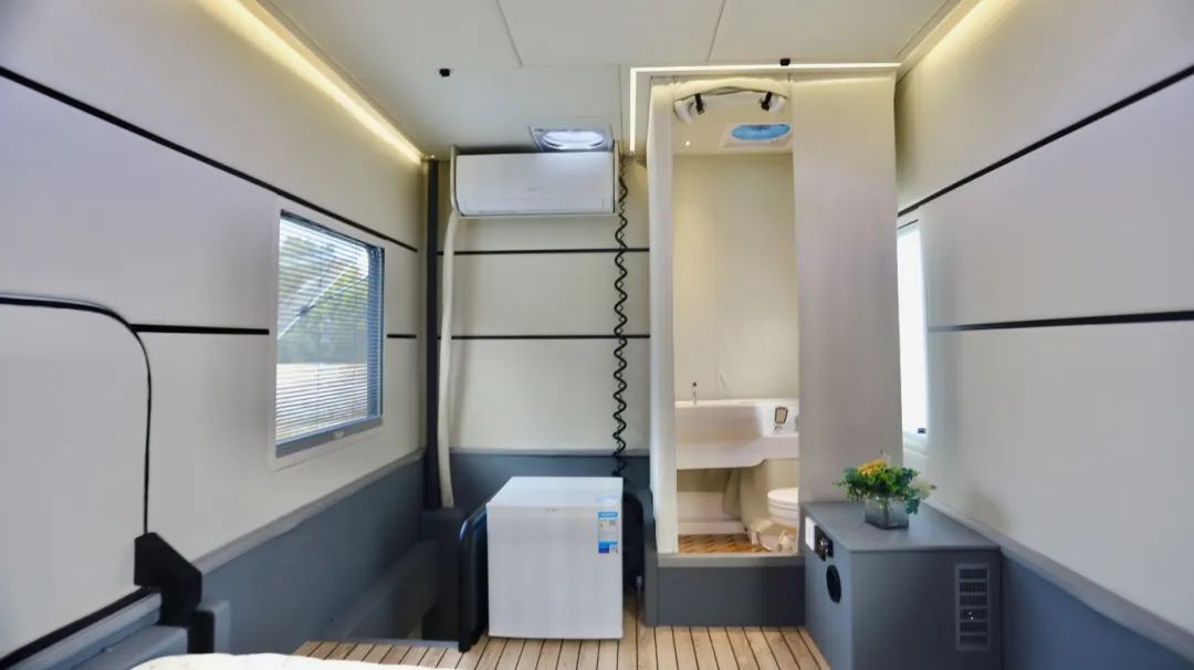 為了滿足長期旅居,做到了大水大電,整車是配備24V電路系統(tǒng),3000w+5000w雙逆變器,800AH鋰電也就是20度電、頂部還滿鋪了1800w太陽能板;450L清水以及318L灰水,給足您旅行的底氣!
