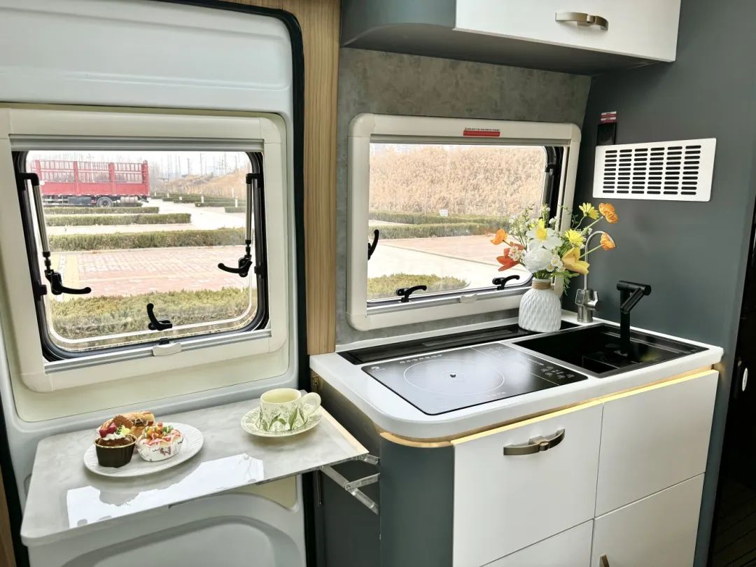 B型車的外觀、C型車的大空間,里面竟然可以做到四座三床雙廚房,一直期待的福特T8鐵C終于和大家見面了! 從最初的鐵 C 到福特 V348 底盤的鐵 C—創(chuàng)世版,再到搭載福特 T8 底盤的鐵 C!鐵 C 這款車向來是飛翔的經(jīng)典設(shè)計之作,每一次的升級換代均凝聚著飛翔設(shè)計團隊的智慧與心血,從鐵殼到一體成型三明治結(jié)構(gòu)的轉(zhuǎn)變,更是有力見證了對品質(zhì)的追求。 2.3T柴油發(fā)動機、采埃孚8AT自動擋變速箱,最大功率128KW,峰值扭矩為430N.M,車長5米99、寬2米35、高3米,依舊是滿足上藍牌持C證的駕駛門檻,無需增駕。 整體的外觀非常低調(diào),只有黑白兩色,沒有任何的拉花設(shè)計,非常耐看內(nèi)斂,從外觀上看幾乎看不出是一臺房車,但簡單的外觀卻擁有不簡單的殼體,采用一體成型的設(shè)計,通過模具開模而成,無接縫無打膠、有筋線有腰線,也不用擔(dān)心車用久了生銹開裂;三明治的板材結(jié)構(gòu),最外層是高分子的復(fù)合材料,中層是XPS的保溫層,最內(nèi)層為鋁合金的承重龍骨,整車的保溫隔音降噪的效果會更好一些;沒有采用B型房車推拉門,而是乘客門,讓更大化地利用車內(nèi)空間。 中門旁邊的艙門打開,可以拉出來高原版本的柴油爐,也是飛翔的自主知識產(chǎn)權(quán),最高火力值可以達到五千瓦,火力值更加強勁,還是防強風(fēng)的模式,在這里做飯更加輕松。 來到后尾門的位置,可以發(fā)現(xiàn)和之前對開門的形式,有所區(qū)別,采用上掀式的設(shè)計,物品的拿取更加簡單。下方為您配備電動駐車支腿,其電動驅(qū)動系統(tǒng)操作極為簡便,只需輕按車內(nèi)遙控器,支腿便能迅速、平穩(wěn)地展開與收回,無需手動費力調(diào)節(jié)。 來到主駕駛的一側(cè)就是本車的加水口以及充電口了,那本車采用48V的電路系統(tǒng),配備了3000w的逆變器、400AH鋰電池、800w太陽能板;240L清水箱、170L灰水箱,出行水電無憂。 在駕駛艙區(qū)域,配備有電子助力方向盤、12.3英寸的雙聯(lián)屏、倒車?yán)走_、倒車影像、胎壓監(jiān)測、定速巡航等多項駕駛輔助系統(tǒng),在行車過程中更加方便。 會客廳設(shè)置了兩張航空座椅,除基本的調(diào)節(jié)功能之外,還帶有通風(fēng)按摩加熱等功能,可以看到整個會客廳的空間是相當(dāng)寬敞的,毫不夸張的講,在會客廳里打地鋪都完全能夠躺下,所以說在設(shè)計上是有很多加成的。 墻體一側(cè)采用了更加靈活的升降折疊桌,不用的時候整體空間開闊,當(dāng)我們進行使用的時候只需要一鍵就能上升,還能進行橫向拓展,可以得到1米2的超大桌面,一家人面對面的聊天或者娛樂打牌都是足夠的。 桌面使用的仿大理石的材質(zhì),不僅輕量化,打理起來也比較簡單,可以說這張桌子也是會客廳空間寬敞的關(guān)鍵因素。 會客廳的上方設(shè)置有家用空調(diào),駕駛室的上方為32寸的液晶網(wǎng)絡(luò)電視,可聯(lián)網(wǎng)可投屏。 會客廳頭頂?shù)奈恢镁褪蔷艑m格的燈池,提供車內(nèi)的照明,除了這個基礎(chǔ)功能之外,還是一張雙人床鋪,通過電控按鈕進行操作就可以得到一張1米3乘2米的雙人大床。 當(dāng)平時出行人數(shù)比較多的時候,它就可以派上用場,前方還有一扇大大的觀景天窗,晚上停在駐車地,可以欣賞晚上的景色,真正做到了用的時候好用,不用的時候不影響空間。 不僅如此,在后方還有兩張床可供選擇,目前圖片所呈現(xiàn)的是一張單人床,留給過道充足的空間。 當(dāng)晚上兩人休息的時候,就可以將床向衛(wèi)生間的方向進行拓展,這樣就從單人床變成一張雙人床了。 雖然還是大家熟悉的雙人床,但是在之前的基礎(chǔ)上進行了優(yōu)化升級,之前床拓展之后衛(wèi)生間就沒辦法使用了,但是現(xiàn)在衛(wèi)生間的門板更加靈活,即使床鋪進行拓展,旁邊也有部分空間方便晚上起夜進出衛(wèi)生間。 除此之外,在固定床的上方還有一個大的儲物吊柜,平時的時候可以放置衣服被褥,但是當(dāng)人數(shù)比較多的時候,吊柜還可以下降變成一張單人床,這樣一上一下就是子母床的布局了,將空間得到充分的利用。 旁邊的衛(wèi)生間也是兩種尺寸進行選擇,更加靈活,內(nèi)部的設(shè)施也比較齊全,抽拉馬桶洗手盆、淋浴花灑換氣扇,一個人在這里洗漱洗澡上廁所通通不成問題。 你不說我不說,誰又能想象在房車?yán)镞€能擁有這么大一個廚房呢?電磁爐搭配升降式抽油煙機,在車?yán)镒鲲堃膊挥脫?dān)心油煙了,平時不使用的時候抽油煙機隱藏在下方不占用臺面更加美觀。 上下都設(shè)置了儲物空間來放置廚具,旁邊加深式洗菜池用來清洗蔬菜水果,這樣車內(nèi)外都有廚房,隨時都能發(fā)揮廚藝,旁邊還有168L雙開門冰箱以及微波爐,方便儲存食物、做點簡餐。 出門在外,很多車友都在過候鳥式的生活,一年四季衣物的儲放是個大問題,如果搬來搬去無疑會影響您房車生活體驗感,但是這款車的儲物空間分布可以完全緩解您的儲物焦慮。 在冰箱旁邊分別由掛衣柜以及疊衣區(qū),可以分類放置,另外床的上方還有一個超大的儲物吊柜,也可以放置很多物品,當(dāng)然在車外床下還有超大儲物空間供大家去使用。 福特T8-鐵C整車功能區(qū)已展示完畢,關(guān)于價格的話,新年開新車,優(yōu)惠不用您說,新車發(fā)布,絕對優(yōu)惠到位!想了解更多上裝細節(jié)及詳情